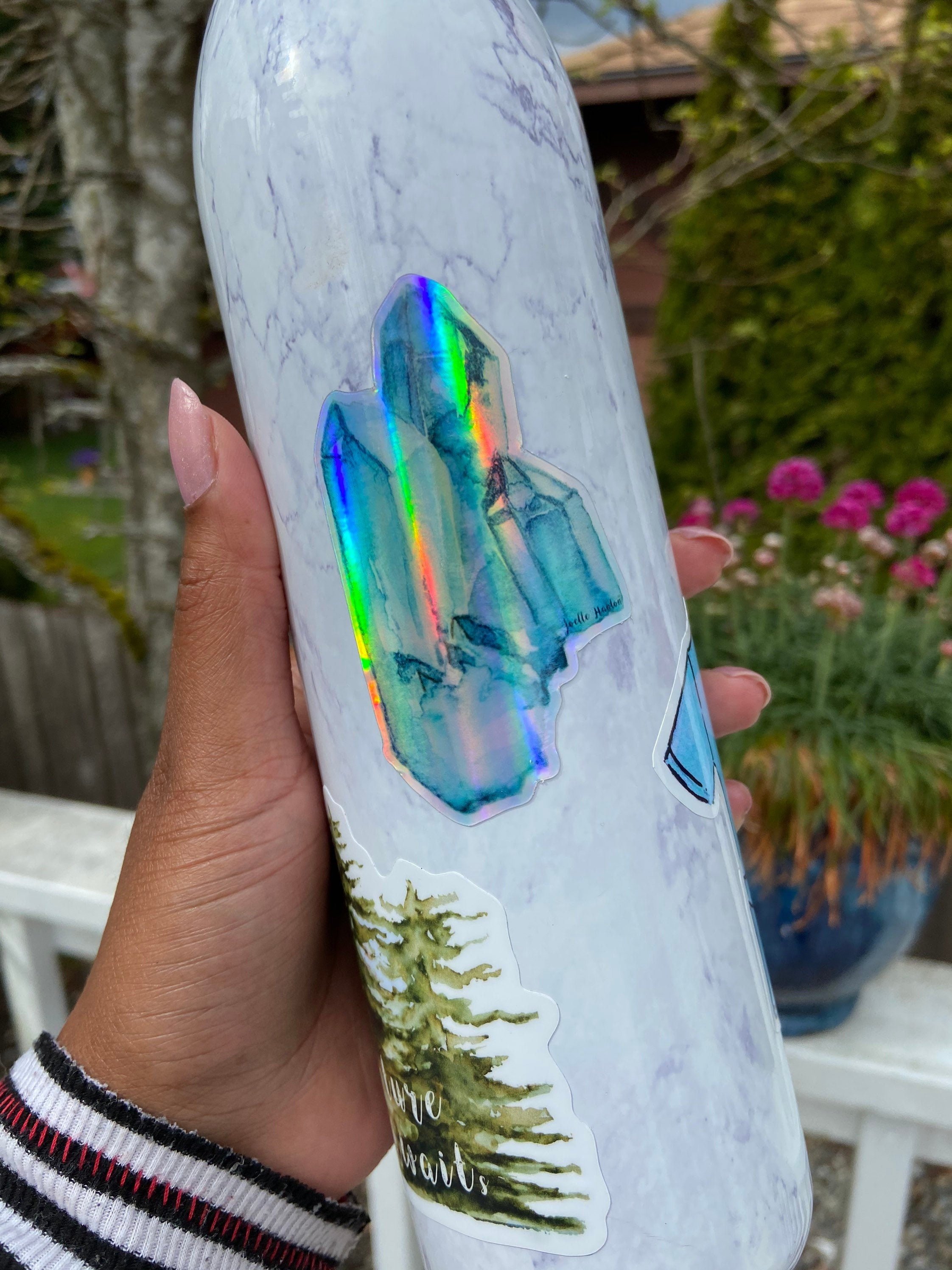1 HOLOGRAPHICTurquoise December birthstone crystal gemstone vinyl Decal Watercolor Design- Laptop, Phone Case Decal Sticker, Water Resistant
